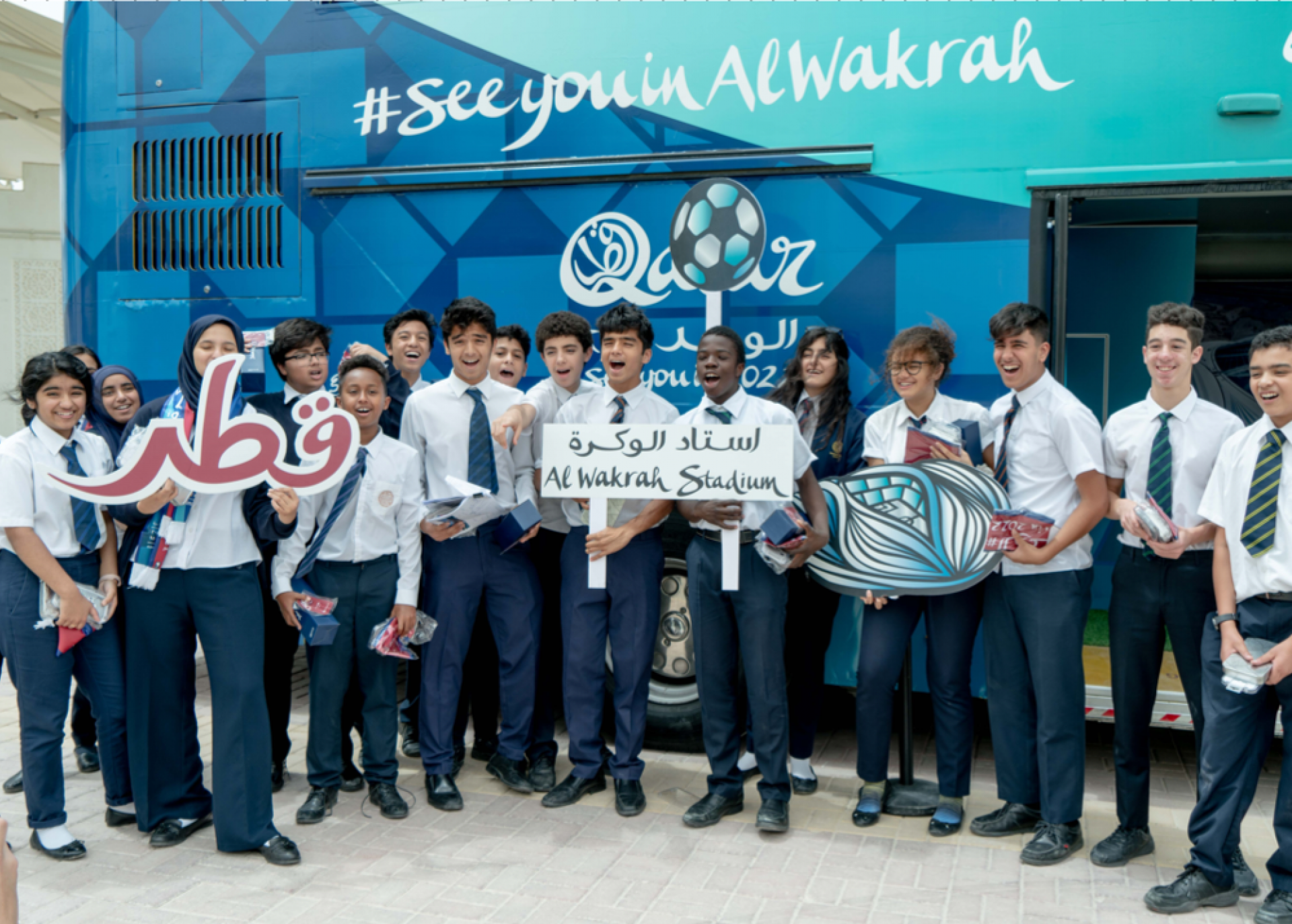 The campaign ran prior to and during the stadium opening as the Bus travelled around Doha and Al Wakrah visiting a wide variety of public spaces and schools.