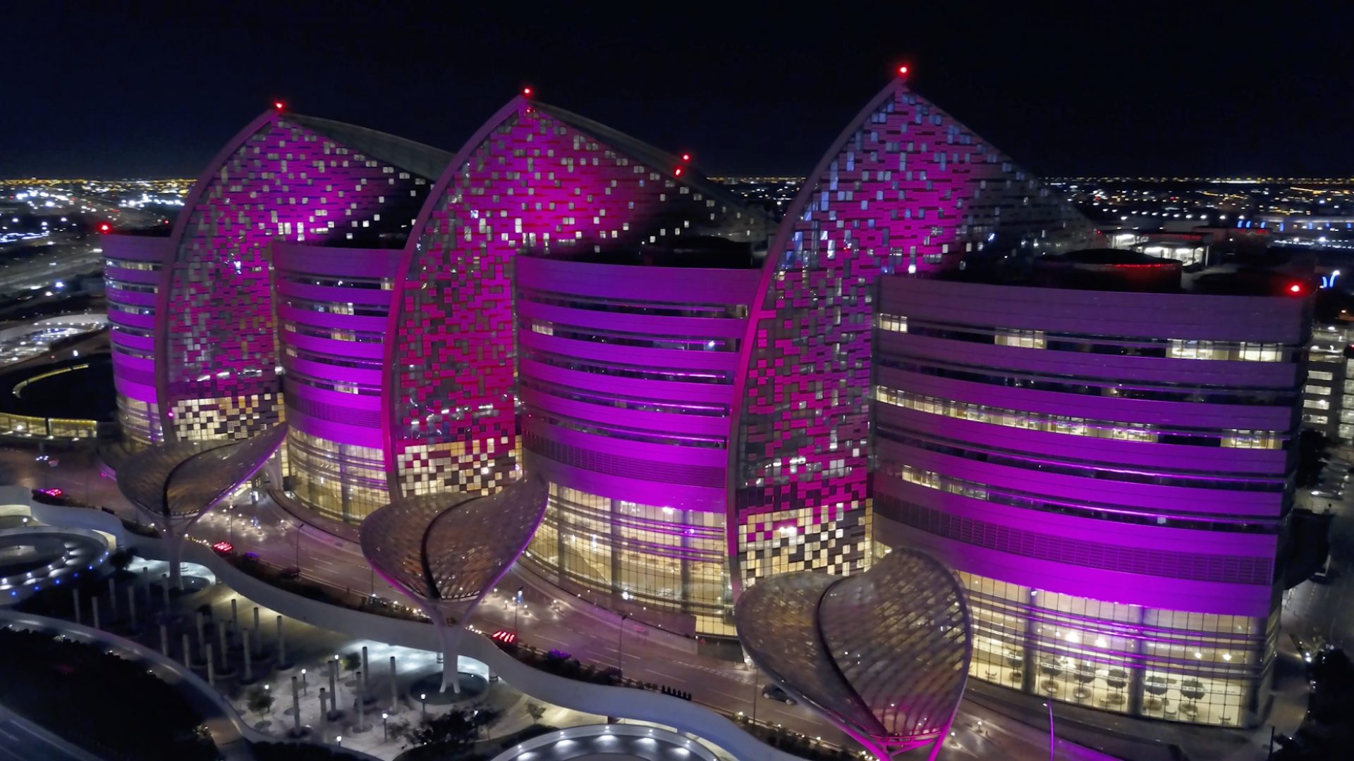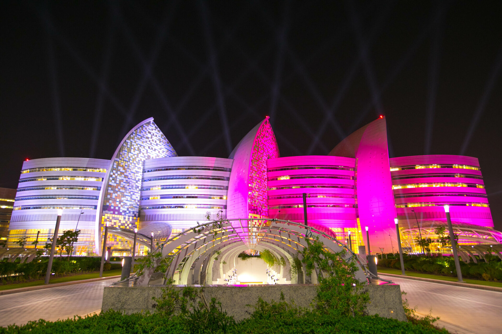 13 LED screens synchronized with 56,000 LEDs illuminating 12,000 sqm building façade created an immersive experience during the staging of the Sidra Symphony, taking the audience on a journey through Sidra Medicine, its world-class facilities and staff.